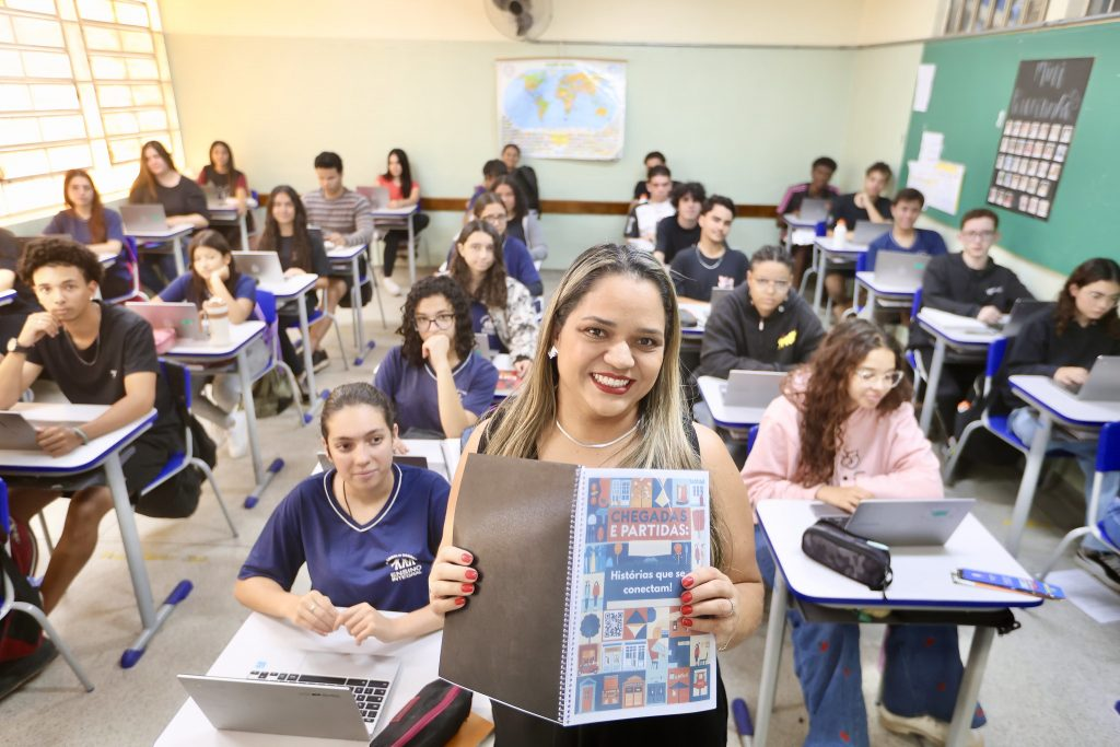 O projeto da professora Priscila na Escola Estadual Ângelo Scarabucci foi nomeado como “Chegadas e Partidas: Histórias que se Conectam”.
