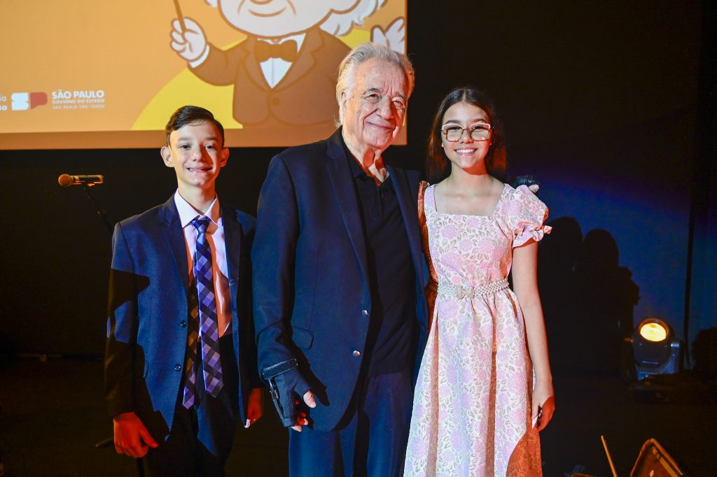 A cerimônia na sede da Educação, na praça da República, teve a presença do secretário Renato Feder, do maestro João Carlos Martins e de Flávia Bravin, Sócia e Diretora Sr. de Negócios B2G da Cogna. Durante o evento, os estudantes e músicos Miguel e Rebeca Paulino, da Escola Estadual Professor Santos Amaro da Cruz, se apresentaram para os convidados.
