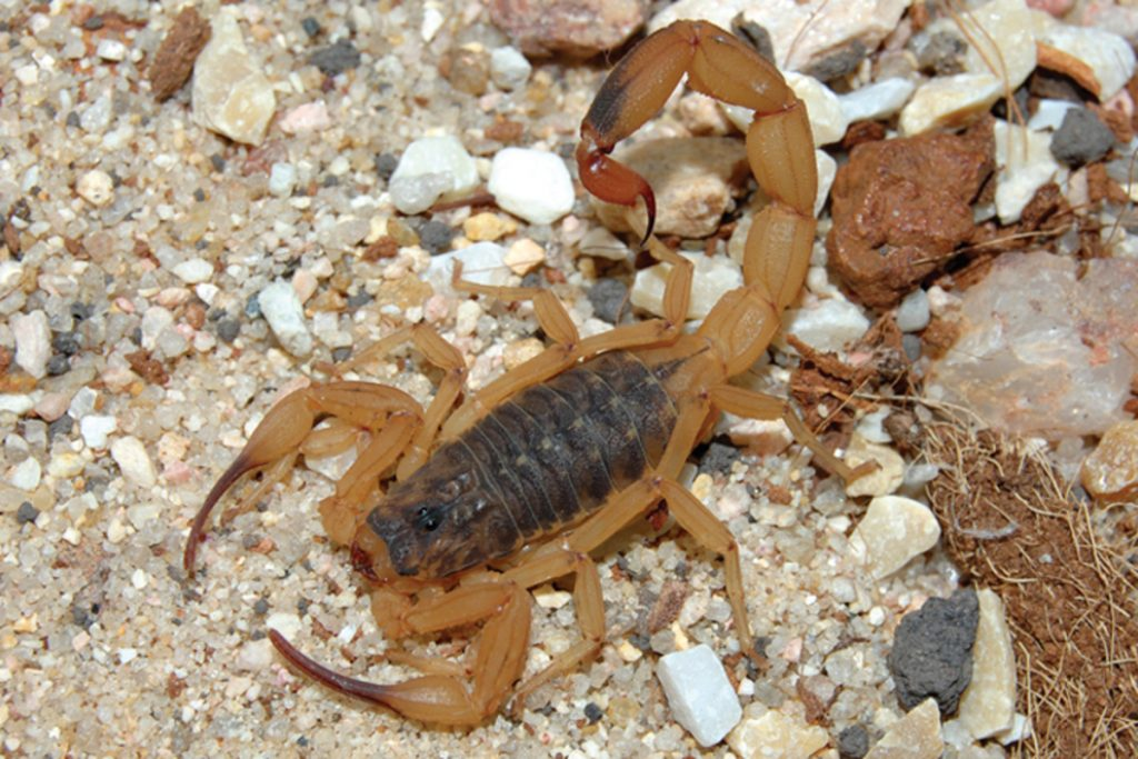 O escorpião injeta veneno por meio de um ferrão na ponta da cauda. Os sintomas mais comuns são dor intensa no local e agitação. Em quadros moderados, podem surgir vômitos, suor excessivo e aumento dos batimentos cardíacos. Casos graves envolvem tremores, sonolência, salivação excessiva, convulsões e, em situações extremas, insuficiência cardíaca.